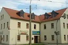 Built in 1872 on Hamburger Straße next to the old Junge Generation theater, the Hofbrauhaus was a large brewery measuring 120 meters in length. It was among the 100 largest breweries in the German Empire with a total output of 117,000 hectoliters in 1913.[26] However, due to the shortage of raw materials after World War I and the fierce competition in the Dresden beer market, the brewery was discontinued in 1921. The brewery was subsequently used by Ludwig Hupfeld AG, a pipe and fittings factory during the Third Reich, and VEB Chemiehandel Dresden after World War II. Between 1992 and 2008, the partially listed former Hofbrauhaus was gradually demolished. A supermarket now stands on the site, and the Hofbrauhaus fountain can still be seen inside.