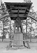 Except for minor repairs at its base and roof, the cotton press is constructed of original materials. In 1961, the press was considered to be in excellent condition and an excellent example of handmade craftsmanship.[3] It is the only cotton press of this era in South Carolina.[5] There is a similar wooden cotton press on the Town Common in Tarboro, North Carolina.[8] Another antebellum cotton press without the buzzard wings poles is at Magnolia Plantation near Derry, Louisiana. This press has a fixed screw and its base is rotated to compress the cotton.[9][10]