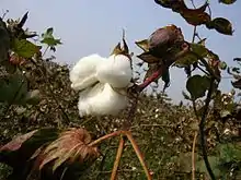 Cotton production in China pertains to cotton which is the prime cash crop of China. Its production was the highest in the world (in excess of 20 percent of world production) from 1982 until being overtaken by India. Twenty-four of the 35 provinces of China grow cotton, with nearly 300 million people involved in its production. It is the main input for textile industry of the country with cotton textiles now accounting for 80% use vis-à-vis 95% in the 1950s. The cotton textile industry employs over 10 million people.[1][2] Its production in 2012–13 was 7.6 million tons, but in 2013–14 it dropped to 7 million tons.[3] Historically, its introduction in China is considered a 'southernization', a crop which originated from southern Asia (India) during the "proto-globalization" period.[4]