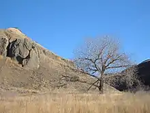 In Wisconsin, they are the product of nearly a half million years of erosion, unmodified by glaciation (see Driftless Area[5]). The loose rocks at the base of the wall form what are called scree slopes. These are formed when chunks of the canyon wall give way in a rockslide. Left alone, the valleys are often woodland, with the ridgetops transitioning into tallgrass prairie when not turned into pasture or used for row crops.