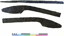 - ↑ Thomas, Gabor; McDonnell, Gerry; Merkel, John; Marshall, Peter (2016). "Technology, ritual and Anglo-Saxon agriculture: the biography of a plough coulter from Lyminge, Kent". Antiquity. 90 (351): 742–758. doi:10.15184/aqy.2016.73. ISSN 0003-598X. S2CID 55156730.