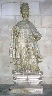 The Reims council also condemned Éon de l'Étoile, a Breton heretic and ordered his arrest. He was eventually tortured into confession and imprisoned until his death in 1150.[5] Further decrees condemned the Anacletans and supporters of an earlier antipope, who had previously been condemned in 1136.[6] Further side business was the settling of a dispute between two Norman abbots, Eustachius of Jumièges Abbey and Robert of the Abbey of St. Vincent, Le Mans, an issue which was delegated to two cardinals to decide. They reached a decision on 5 April. Other disputes, including other cases of contention between abbots, were also handled at the council, although not necessarily during the council deliberations. Also included in the council's business was the confirmation of the excommunication of the Bishop of Dol and the Bishop of Saint-Brieuc. Although it has been said that the Bishop of Orléans and the Bishop of Troyes were deposed by the council, this is erroneous, and probably stemmed from the number of ecclesiastics who were suspended for non-attendance.[1]