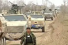 Concerted operations began with numerous raids and "provocative patrols" into the Taliban heartland, already dubbed "Talibania" by German troops.[21] Four insurgents and two ANA soldiers were killed in various engagements and more than 40 insurgents got captured,[22] with large amounts of weapons and explosives seized. German troops tried to maintain a presence even in remote areas during these weeks and were frequently attacked in the face of an overall deteriorating situation in all RC-N: On April 17, 2010, a Norwegian officer was killed when his patrol struck a roadside bomb.[23] On April 29, German troops made a concentrated advance into Chardara district and suffered 15 casualties when they were attacked by suicide bombers and came under heavy fire by an overwhelming insurgent force. A trooper of 2nd company, 292nd Light Infantry Battalion was killed in action, marking the first time since World War II that a German soldier would fall in combat. German troops were attacked regularly during the following weeks.[24][25]