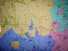 Many smaller exclaves were overlooked in the drawing up of the 1832 schedule and so were ignored in the 1844 Act, for example the small exclaves of the Buckinghamshire parishes of Drayton Beauchamp and Marsworth in Hertfordshire.[21][22] Similarly, the chaotic meeting of Nottinghamshire, Lincolnshire and Yorkshire at Auckley and Misson was ignored despite the Ordnance Survey First Series 1841 not attempting to show boundaries (and giving despairing notes instead, e.g: "Township of Auckley in the Counties of York and Nottingham").[23]