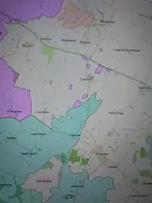 Muddle could be a factor in exclaves being left alone. Northamptonshire had eight small exclaves in the Huntingdonshire parish of Great Catworth, which were reported by the confused clerk of the peace of the latter county in 1825 as the county's enclaves when he had been asked to report on exclaves.[14] The 1832 schedule listed them as exclaves of Huntingdonshire in Northamptonshire (back to front),[24] and the 1844 Act ignored them.