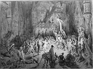 The cour des miracles as imagined by Gustave Doré in an illustration to The Hunchback of Notre-Dame.