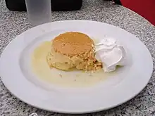 Leche flan is also commonly baked into pastries. The most common is the Filipino dessert flan cake or leche flan cake, a Filipino chiffon or sponge cake with a layer of leche flan on top.[16][17][18] It can similarly be baked into steamed cupcakes known as puto mamón, a combination known as puto flan.[19]