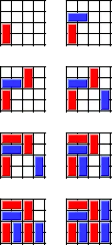 In 2009, Martin Schneider computed the Grundy values up to the 3 × 9, 4 × 5 and 5 × 7 boards.[2] In 2010, Julien Lemoine and Simon Viennot applied to the game of Cram algorithms that were initially developed for the game of Sprouts.[3] It allowed them to compute the Grundy values up to the 3 × 20, 4 × 9, 5 × 9, 6 × 7 and 7 × 7 boards.[4]