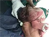 The condition is extremely rare, with an incidence of approximately 1 in 2.5 million live births.[3] An estimated 50 craniopagus twins born around the world every year as of 2021, with only 15 twins surviving beyond the first 30 days of life.[4] Relatively few craniopagus twins survive the perinatal period; approximately 40% of conjoined twins are stillborn and an additional 33% die within the immediate perinatal period, usually from organ abnormalities and failure.[5]