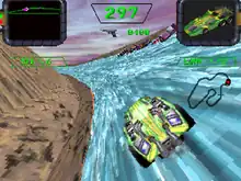 Crash 'N Burn is a futuristic racing/shooter video game developed by Crystal Dynamics and released for the 3DO in 1993.[2] The game was the launch title for the system and was included as a pack-in game with Panasonic's original 3DO console.[3]