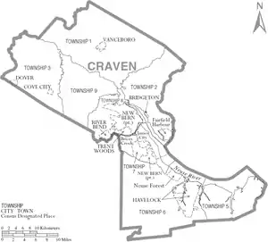 - ↑ Powell, William S. (2006). "Craven County". NCPedia. North Carolina Government & Heritage Library. Retrieved April 23, 2023.