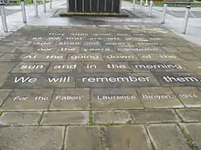 And the paving in front of the memorial is inscribed:[1][lower-alpha 2]