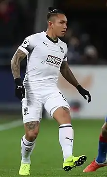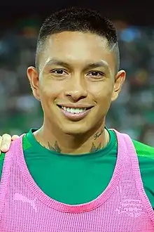 Cristian Leonel Ramírez Zambrano (Spanish pronunciation: [ˈkɾistjan raˈmiɾes]; born 12 August 1994) is an Ecuadorian professional footballer who plays as a left-back for Ferencváros of the Nemzeti Bajnokság I.[2] Fast, intelligent, ambidextrous and a great dribbler are the qualities of Ramirez which has led to the foreign press comparing him to Roberto Carlos.[3][4][5][6][7][8][9]