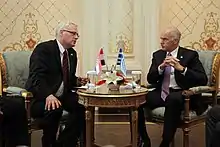 - Prime Minister of Greece, Kostas Karamanlis, met with his Prime Minister of Croatia, Ivo Sanader, in Thessaloniki on October 21, 2004 on the occasion of the Congress of Orthodox Churches and the Congress of European Peoples Parties.