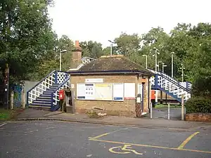 Although the section of the Hastings line through Crowhurst was completed in 1852, no station existed at this location until the South Eastern and Chatham Railway (SECR) built a branch line to Bexhill West in 1902.[1] Crowhurst served as a junction station, with Up and Down through platforms and a bay platform at the southern end of each until closure of the Bexhill West branch in 1964. Most of the station buildings have been demolished,[2] but the remains of the bay platforms are still visible and a small building survives on the Up side. The station is normally unstaffed.