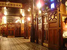 The Crown has ten booths, or snugs. Built to accommodate the pub's more reserved customers during the austere Victorian period, the snugs feature the original gun metal plates for striking matches and an antique bell system for alerting staff.[3][4] Extra privacy was then afforded by the pub's etched and stained glass windows which feature painted shells, fairies, pineapples, fleurs-de-lis and clowns.