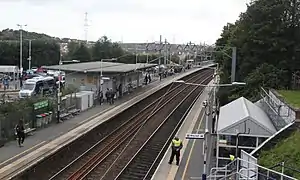 As part of the Edinburgh to Glasgow Improvement Programme, the line through the station has been electrified.[7]