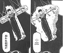 - ↑ Referring to Western suppression of these images, Patrick Drazen wrote: "It's ironic that a symbol as potent as crucifixion should be edited out precisely because of that potency. After all, the way it's generally used in anime—when it's used at all—is in a manner Westerners can understand. It becomes a form of torture for someone who doesn't deserve it."(Drazen 2003, pp. 142–43)