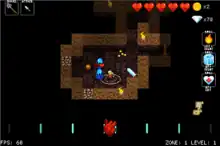 The game was released on Steam early access on July 30, 2014, using public feedback to improve the title,[10][11] with full release on April 23, 2015.[12] The game was released for the PlayStation 4 and PlayStation Vita on February 2, 2016.[13][14] An iOS version, with support for both screen and Bluetooth controllers, was released on June 30, 2016.[15] An Xbox One version of the game was released on February 10, 2017.[16] A Nintendo Switch version was released on February 1, 2018, which includes a new character exclusive to the platform as well as co-operative support.[17][18] The developers had approached Nintendo about providing Switch-unique DLC based on Nintendo's properties for this release. Instead, this led to further discussions to make a wholly new crossover game, Cadence of Hyrule, with Cadence joined by Link and Zelda in the world of The Legend of Zelda.[19]