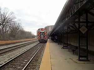 The station has a single side platform located on the west side of the three tracks of the RF&P Subdivision.[2] Crystal City station, used by 18% of VRE riders in 2017, represents an "operational bottleneck" for VRE: the single 400-foot (120 m)-long platform is shorter than 700-foot (210 m) trains and forces all trains to use one track.[3][4]