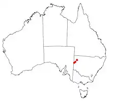 The Barrier Range Dragon is found in the rocky hills of Western NSW at just three locations, including Mutawintji National Park, Purnamoota and Silverton Wind Farm.[2][5] Typically, this species occurs in rocky habitat such as outcrops, gorges, ridges and scattered rock aggregates.[5][6] However, it has also been recorded in mulga shrubland, black oak woodland and hummock grass woodland habitat.[2]