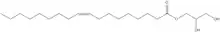 The chemical structure of 1-monoolein, the primary studied lipid building block of a cubosome. It is used to form the bilayer of the membrane.