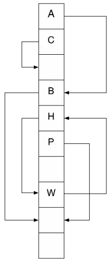 - ↑ Dietzfelbinger, Martin; Weidling, Christoph (2007). "Balanced allocation and dictionaries with tightly packed constant size bins". Theoret. Comput. Sci. 380 (1–2): 47–68. doi:10.1016/j.tcs.2007.02.054. MR 2330641.
