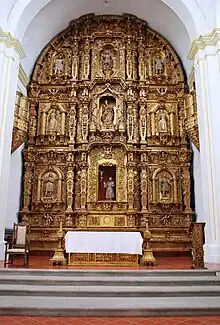 Next to the cathedral is the "open chapel" (capilla abierta) of San José, which is an original structure built in the 16th century. It also was rescued and restored by Bishop Méndez Arceo and is one of the oldest constructions on the site. The building consists of a vault with three arches that face the atrium. These arches are supported by a pair of flying buttresses. Inside the arches is an altarpiece dating from the 17th century.[4][41]