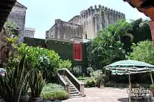 During the Mexican War of Independence, José María Morelos was imprisoned at the Palacio de Cortés in November 1815.[20] Agustín de Iturbide's army passed through Cuernavaca to fight Vicente Guerrero in 1820 and came through again in 1821, as the head of the Ejército Trigarante.[21] After Independence and with the Constitution of 1824, the territory now known as the State of Morelos became part of the State of Mexico. Between 1827 and 1829, Cuernavaca was a district of this state. From 1829 to 1833, it was called a prefecture. In 1833, the State of Mexico declared the Atlacomulco Hacienda, which contains the Palacio de Cortés and Cortés's houses in Coyoacán, to be public property.[15]