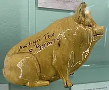 The pig is often a subsidiary part of the mixed farm.[21] In 1918, Glamorgan farmers established The Old Glamorgan Pig Society. This was in response to the restriction on imports of pork and bacon due to World War I. This was the first pig breeding society in Wales and its first herd book was published in 1919. In 1920 the society amalgamated to form the Welsh Pig Society because similar breed types were also being raised in Ceredigion, Pembrokeshire and Carmarthenshire. This created the breed known as the Welsh pig which has had its own herd book with the National Pig Association since 1953.[22]