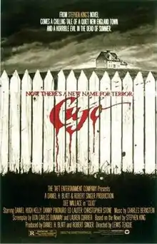 Cujo is a 1983 American horror film based on Stephen King's 1981 novel of the same name and directed by Lewis Teague. It was written by Don Carlos Dunaway and Barbara Turner (using the pen name Lauren Currier),[4][5] and starring Dee Wallace, Daniel Hugh Kelly and Danny Pintauro.