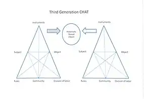 - ↑ More recently, Engeström has acknowledged that the third-generation model limited to analysing 'reasonably well-bounded' systems and that, in view of new, often web-based participatory practices a rethink is needed. (See "Fourth Generation" below.)