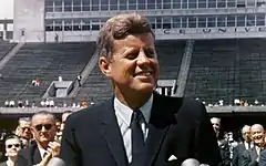 Eleven weeks before the Beatles' arrival in the US, President John F. Kennedy was assassinated, a source of profound national mourning that American commentators at the time linked to young people's embrace of the Beatles and their music.[106] For many Americans, particularly young baby boomers, the Beatles' visit reignited the sense of excitement and possibility that had been taken by Kennedy's assassination.[107][108][109][110] A teenage New Yorker in early 1964, author Nicholas Schaffner later wrote that the Kennedy link was "an exaggeration, perhaps", but the Beatles "more than filled the energy gap" left by the demise of 1950s rock 'n' roll for an audience accustomed to the "vacuous" music that had replaced it.[106]