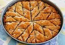 - Baklava is one of the traditional pastries of the Kosovar cuisine. Although of Turkish origin, baklava's preparation and recipe is a small heritage that is passed on generation to generation in Kosovo as well. There are a few different ways of making baklava, (varying from the way it is rolled) or what kind of nuts and fruits it contains.