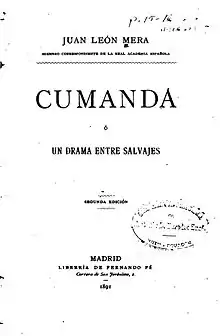 Cumandá o Un drama entre salvajes (English: Cumanda or A Drama Between Savages) is a classic Ecuadorian novel by Juan León Mera. The novel was written in 1877.