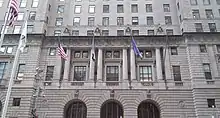 The building was sold again in 1971, this time to the Cementation Company of America, a subsidiary of Trafalgar House Investment Group.[14][79] Initially, the owners had difficulty finding tenants for the Great Hall due to its vast size.[80] The United States Postal Service leased the Great Hall in 1974, intending to relocate its post office from the nearby Alexander Hamilton U.S. Custom House two years later.[81] By 1977, the USPS had moved into the Great Hall, and Standard & Poor's had signed a 20-year lease for space at the Cunard Building.[16] The building was sold to Zev W. Wolfson for $15 million by 1979.[82] The City College of New York's Center For Worker Education was established on the seventh floor of the Cunard Building in 1981.[83]