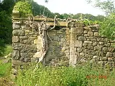 A small doocot or dovecot was above the entrance arch until its removal by the current owner. This was a feature of many estates, as the right to build a doocot was originally strictly limited to the major landowners, and only later were small freeholders permitted to build them; at a more recent date tenants could sometimes gain permission from their landlord to build doocots for the meat or to add a picturesque feature to their properties.[20]
