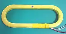 The knee-point voltage of a current transformer is the magnitude of the secondary voltage above which the output current ceases to linearly follow the input current within declared accuracy. In testing, if a voltage is applied across the secondary terminals the magnetizing current will increase in proportion to the applied voltage, until the knee point is reached. The knee point is defined as the voltage at which a 10% increase in applied voltage increases the magnetizing current by 50%.[2] For voltages greater than the knee point, the magnetizing current increases considerably even for small increments in voltage across the secondary terminals. The knee-point voltage is less applicable for metering current transformers as their accuracy is generally much higher but constrained within a very small range of the current transformer rating, typically 1.2 to 1.5 times rated current. However, the concept of knee point voltage is very pertinent to protection current transformers, since they are necessarily exposed to fault currents of 20 to 30 times rated current.[3]