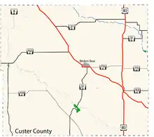 Custer County is a county in the U.S. state of Nebraska. As of the 2020 United States Census, the population was 10,545.[1] Its county seat is Broken Bow.[2] The county was formed in 1877[3] and named after General George Armstrong Custer,[4] who was killed at the Battle of Little Bighorn.