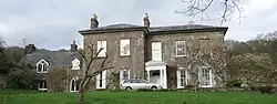 The original buildings were mostly demolished in 1830. The existing structure dates from soon afterwards,[3] and is on the site of the now demolished 17th-century house that held the Jesuit college and incorporates part of it. Enough remains of the original house, half-way up the long range of hills which slope down to the River Monnow, to trace the life led by its Jesuit inmates in the penal times.[3] Originally a shooting box, and subsequently a farmhouse, it is Grade II listed, together with the terrace in front of the house, and the retaining wall to the side, which contains rare bee boles.[18][19] There is a wood in the area known today as Cwm Wood.