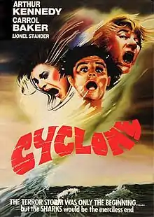 Cyclone (Spanish: El Ciclón; also known as Terror Storm) is a 1978 Mexican survival horror film directed by René Cardona Jr.[1] and starring Arthur Kennedy, Carroll Baker, and Lionel Stander. The plot follows a group of passengers from a crashed airplane who find refuge on a small tour boat in the ocean, and who eventually resort to cannibalism for survival.[2] The film is purportedly based in part on Alfred Hitchcock's Lifeboat (1944).[3]