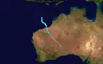A low-pressure developed east of the 90th meridian east or the border of the basin on 26 December, and had a moderate chance of intensifying into a tropical cyclone.[27] TCWC Perth later classified it as a weak tropical low with the identifier of 06U.[28] On 28 December, as the low slowly moved south, unfavorable environments hinder the chance of being a cyclone.[29] TCWC Perth made its final bulletin of the tropical low as it slowly drifted west on 29 December.[30] During 19 January Tropical Low 07U developed within the monsoon trough of low pressure, about 300 km (185 mi) to the west of West Island in the Cocos (Keeling) Islands.[31] Over the next couple of days, the system moved north-eastwards and tried to develop further in a marginally conducive environment for further development.[32] However, the system weakened on 21 January, before it was last noted on 24 January, as it was not expected to develop into a tropical cyclone.[33][34] During 14 February a weak tropical low lied in an area of marginal conditions for further develop near Christmas Island.[35] Over the next couple of days, environmental conditions surrounding the system became less favorable for further development, before the system was last noted during 16 February.[35][36] During 26 February, Winston entered the basin as an extratropical cyclone, whilst the JTWC classified it as a subtropical cyclone;[37][38][39] ultimately, it made landfall over Queensland as a tropical low and quickly degenerated into a trough, on 3 March.[40][41][42][43]