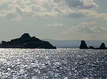 The Cyclopean Isles strongly resemble the Giant's Causeway on the northern coast of Northern Ireland, and the Isle of Staffa off the western coast of Scotland. The latter, closest in appearance to the Cyclopean pair, differs mainly in having the columns piled in terraces, one above another.