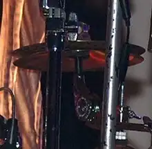 - On an auxiliary boom attached to the rim of a snare drum or timbales. This is particularly popular for playing latin rhythms.