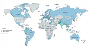 CPA was discovered in 1961.[17] It was originally developed as a progestin.[17] In 1965, the antiandrogenic effects of CPA were discovered.[18] CPA was first marketed, as an antiandrogen, in 1973, and was the first antiandrogen to be introduced for medical use.[19] A few years later, in 1978, CPA was introduced as a progestin in a birth control pill.[20] It has been described as a "first-generation" progestin[21] and as the prototypical antiandrogen.[22] CPA is available widely throughout the world.[23][24] An exception is the United States, where it is not approved for use.[25][26]