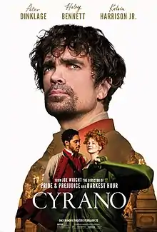Cyrano is a 2021 romantic drama musical film directed by Joe Wright and with a screenplay by Erica Schmidt, based on Schmidt's 2018 stage musical of the same name, itself based on the 1897 Edmond Rostand play Cyrano de Bergerac. The film stars Peter Dinklage, Haley Bennett, Kelvin Harrison Jr., and Ben Mendelsohn. Cyrano had its world premiere at the 48th Telluride Film Festival on 2 September 2021, had a one-week theatrical run in Los Angeles on 17 December 2021, and was released in the United States and the United Kingdom on 25 February 2022. This is MGM's last picture released before the acquisition of the studio by Amazon.