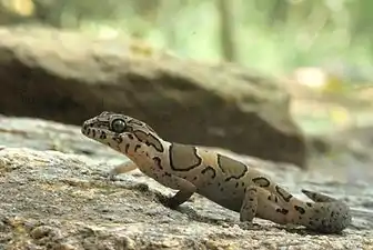 Cyrtodactylus collegalensis, also known as the Kollegal ground gecko or forest spotted gecko, is a species of gecko found in and around Mysore hills, at the junction of the Western Ghats and the Eastern Ghats, in South India. Recent taxonomic works and genetic studies revealed that the formerly-supposed genus is actually a subgenus of the widespread genus Cyrtodactylus. It is often confused with the forest spotted gecko (Cyrtodactylus speciosus).