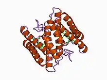 - ↑ Ren Z, Meyer T, McRee DE (November 1993). "Atomic structure of a cytochrome c' with an unusual ligand-controlled dimer dissociation at 1.8 A resolution". Journal of Molecular Biology. 234 (2): 433–45. doi:10.1006/jmbi.1993.1597. PMID 8230224.