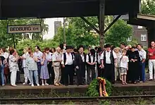 On the evening of 27 May 1995, passenger services were discontinued on the Bedburg–Duren section. The following day, after 32 years, the Sunday operation on the Erft Railway between Bedburg and Horrem resumed. While the last train passed through Bedburg and Elsdorf with public commemorations, speakers and with great expressions of emotions by the population and thus was delayed by 27 minutes, little notice of this event was taken in Düren. The platform loudspeaker announced curtly: "Düren, hier Bahnhof Düren, Gleis 19. Verspätet eingefahrener Nahverkehrszug endet hier" (Düren, here at Düren station, track 19. Late delayed commuter train ends here).