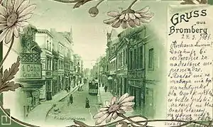 - ↑ "Straßen". Adressbuch nebst allgemeinem Geschäfts-Anzeiger von Bromberg mit Vorvorten. Bromberg: Dittmann. 1907. p. 345.